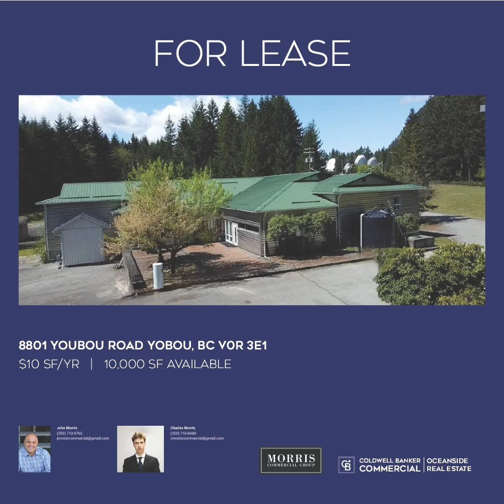 Larger Commercial Unit with additional Exterior Space - C3 and C2. High-visibility commercial unit with highway frontage on the Trans-Canada Hwy and easy access. Approximately 10,200 sq ft interior plus ~10,000 sq ft of exterior space along the highway. Flexible layout with 11 overhead door options, multiple work bays, office area, retail space and mezzanine area. Zoned C3 and C2, offering an extensive range of potential uses. Lease is triple net with below-average operating costs. Also listed for sale—an excellent opportunity for an owner-operator to occupy and capitalize on income from a multi-tenanted property (see mls listing 1024284). Strategically located just blocks from the new North Cowichan Hospital (Quw'utsun Valley Hospital) and the Bell McKinnon development area. Great exposure and upside potential. All measurements approximate and to be verified by tenant.