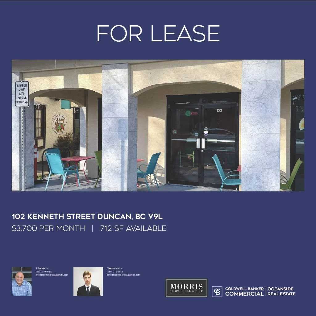 Discover this rare ~ 404 sq ft ground-floor retail strata opportunity in the heart of downtown Duncan. Boasting a spacious outdoor patio, this bright and versatile space is perfectly suited for a wide range of commercial uses — from boutique retail and café concepts to professional services and creative studios. Zoned DTC (Downtown Comprehensive), this flexible zoning allows for multiple permitted uses, making it an ideal opportunity for entrepreneurs looking to establish or expand their business in one of Vancouver Island’s most promising downtown cores. All measurements are approximate and should be verified by the buyer/tenant. Gross rent: $2,785 per month.