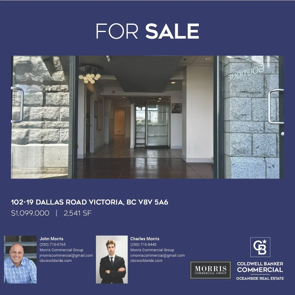 Located in the prestigious Shoal Point Complex, this 2541 sq. ft. unit offers a prime location in Victoria, just a short walk from downtown and steps to Fisherman's Wharf, coffee shops, restaurants, and the marina. The unit features 7 offices/rooms surrounding an open interior area, with additional unimproved space for storage or expansion of the office/retail space. The rear loading bay adds convenience for various business operations. The zoning allows for a range of uses including retail, offices, restaurants, marine commercial, environmental or information technology, research... The unit is bright with most offices having interior windows, making the space attractive and functional. The unit is vacant permitting immediate occupancy. The unit also available for lease - All sizes are approximate.