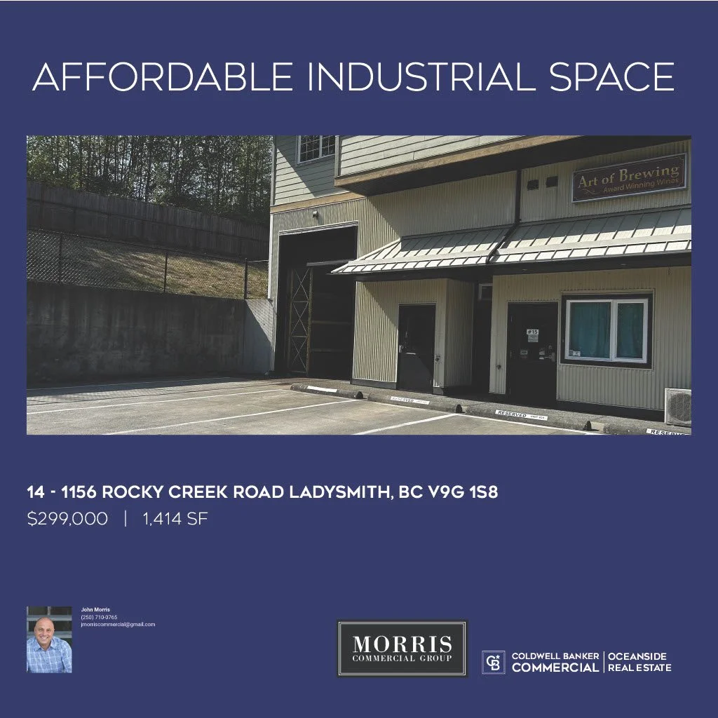 Welcome to Heritage Business Park, a prime location with flexible zoning and convenient access to the Trans-Canada HWY, ideally situated for businesses serving mid and southern Vancouver Island. This unit offers approximately 1,414 sq ft of versatile space, featuring 1,124 sq ft on the main floor and a 290 sq ft mezzanine. Key highlights include a 14' loading door, dedicated storage rooms, and an office area on the mezzanine level. Additional amenities include 125 amp 3-phase power, a convenient 2-piece bathroom, and full metal racking that can be included (addtn'l cost) or removed to suit your needs. The I-1A zoning allows for a wide range of business and service uses, making this an attractive opportunity. Priced competitively, this unit provides a chance to own industrial space in a market characterized by high lease rates and low vacancy. Available for immediate possession, this is a great opportunity and a smart investment. All sizes and measurements should be verified by Buyer.