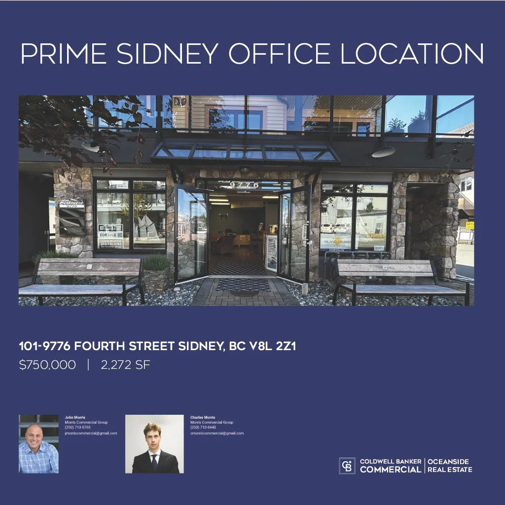 Prime Sidney Commercial Retail/Office Unit - This commercial strata unit is in the prime area of Sidney, just off Beacon Ave., and is surrounded by amenities and high pedestrian traffic. The property is well-maintained and boasts a professional appearance with two levels and separate entries. The street level measures ~792 sq ft while the lower level measures ~1480 sq ft. The unit is zoned C1 (Downtown Commercial), allowing for a broad range of uses for businesses, retailers, and personal or office services. Sidney is a rapidly growing seaside community that offers a high quality of life for both seniors and families. It is conveniently located minutes away from the airport and ferry terminal to Vancouver, and approx. 25km from Victoria. All sizes are approx. and should be verified by the buyer. The unit comes with ~200 sq ft of additional storage space. All sizes approx. and should be verified by Buyer. Please Note - Seller will not review offers below the listing price.