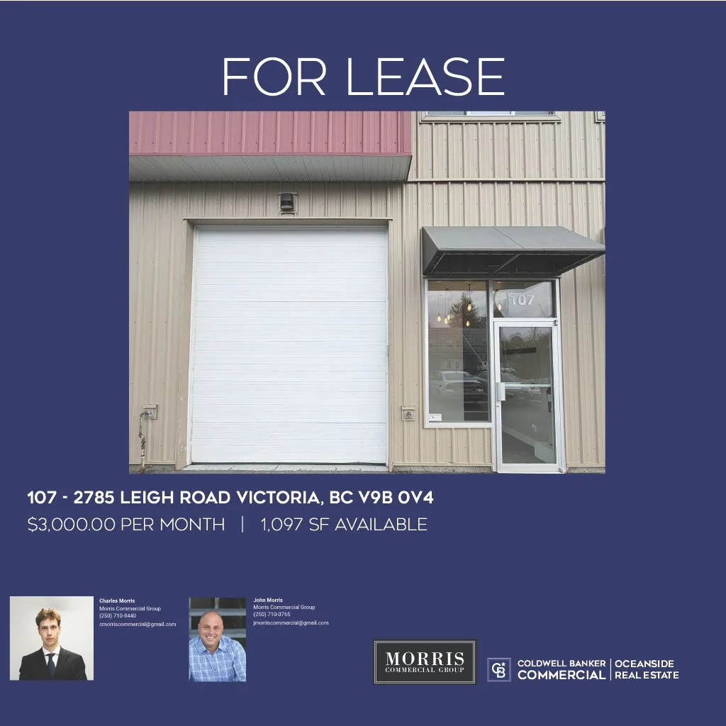 1,096 sq ft commercial unit available for lease in Langford. Functional warehouse/service commercial space featuring grade-level loading bay with overhead door, high ceilings, durable concrete flooring, and bright interior lighting. Includes private washroom and separate man-door access. Offered at $3,000/month gross + GST/Proportionate share of utilities. Two on-site parking stalls included. Excellent access to major routes and centrally located within a growing West Shore commercial area. Zoning suitable for a variety of uses.